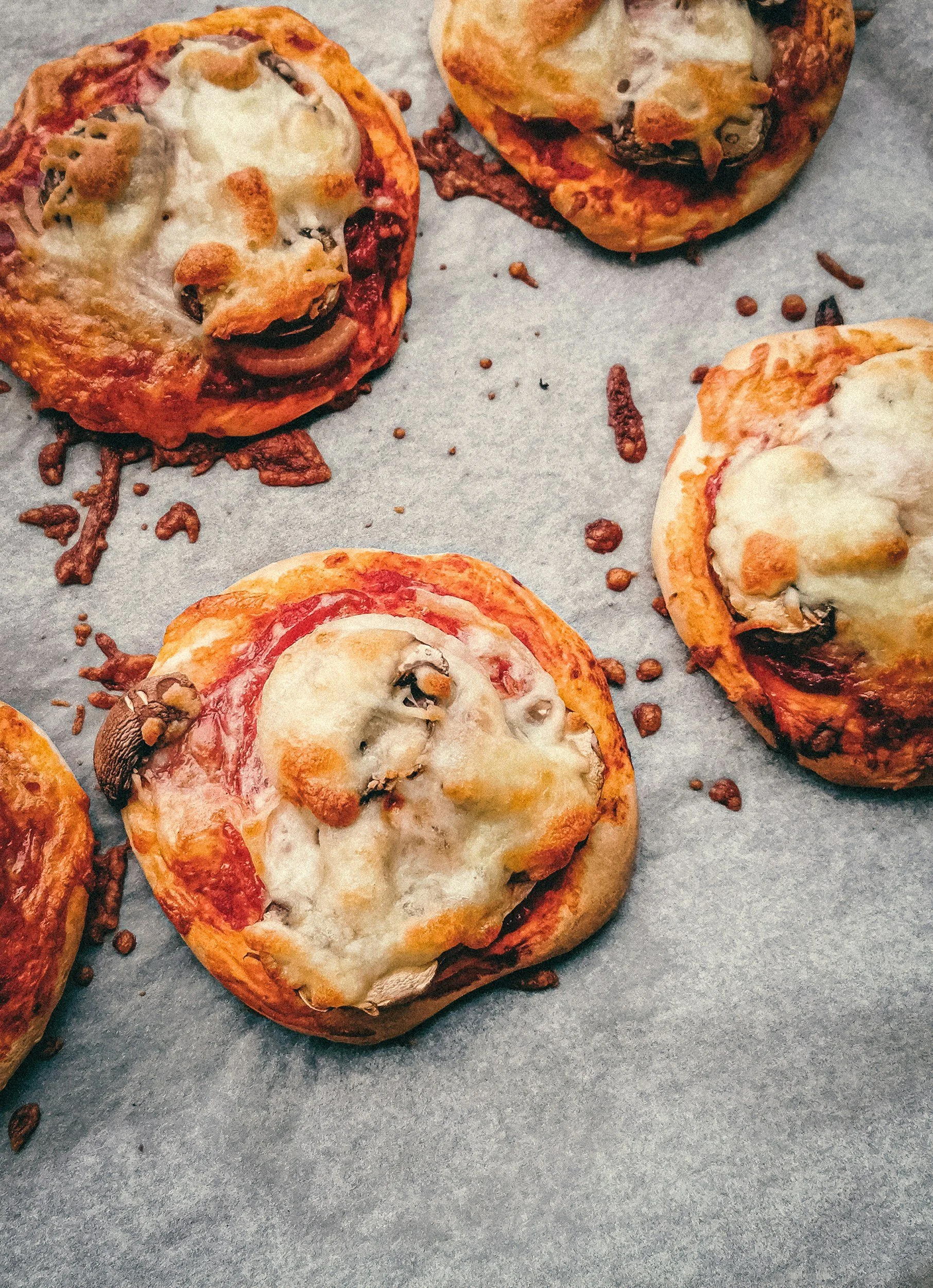 These mini pizzas are made with a yoghurt and flour dough, so there’s no yeast, no rising, and no waiting around - and added bonus, they are high-protein and SO yummy and chewy!