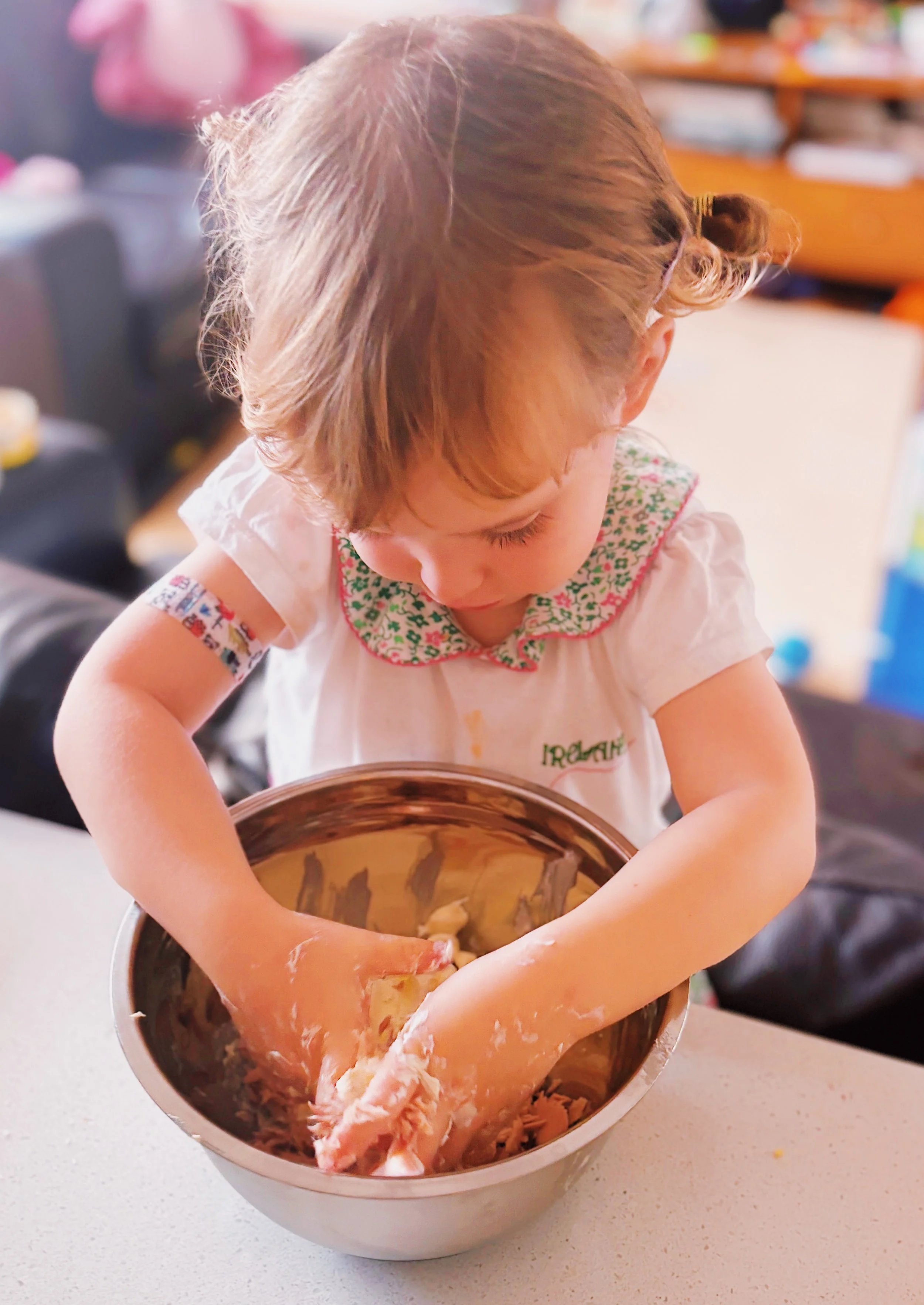 TIP: Your littler helpers will have a great time squishing the “dip dip”. It’s a wonderful & delicious sensory activity.